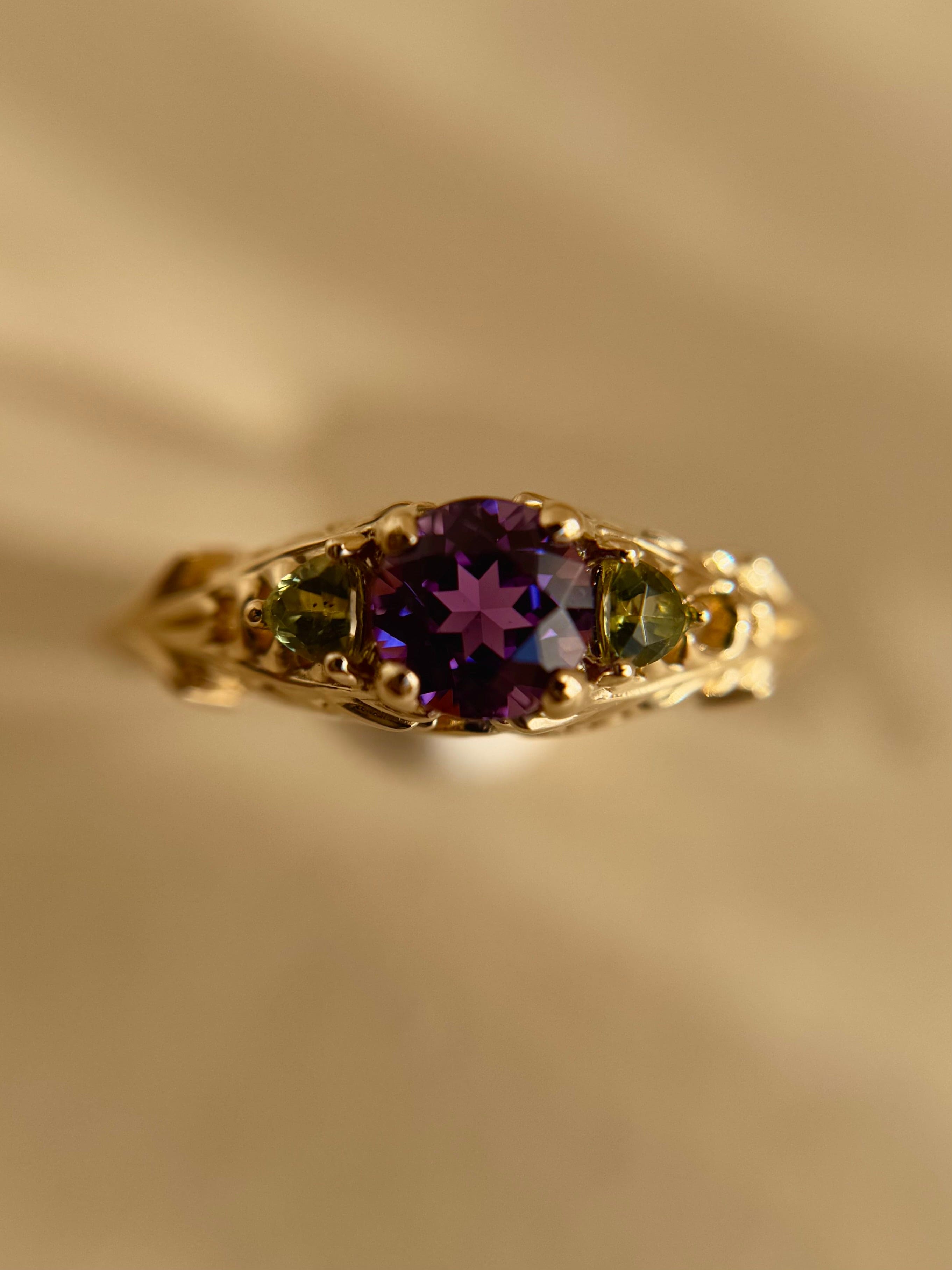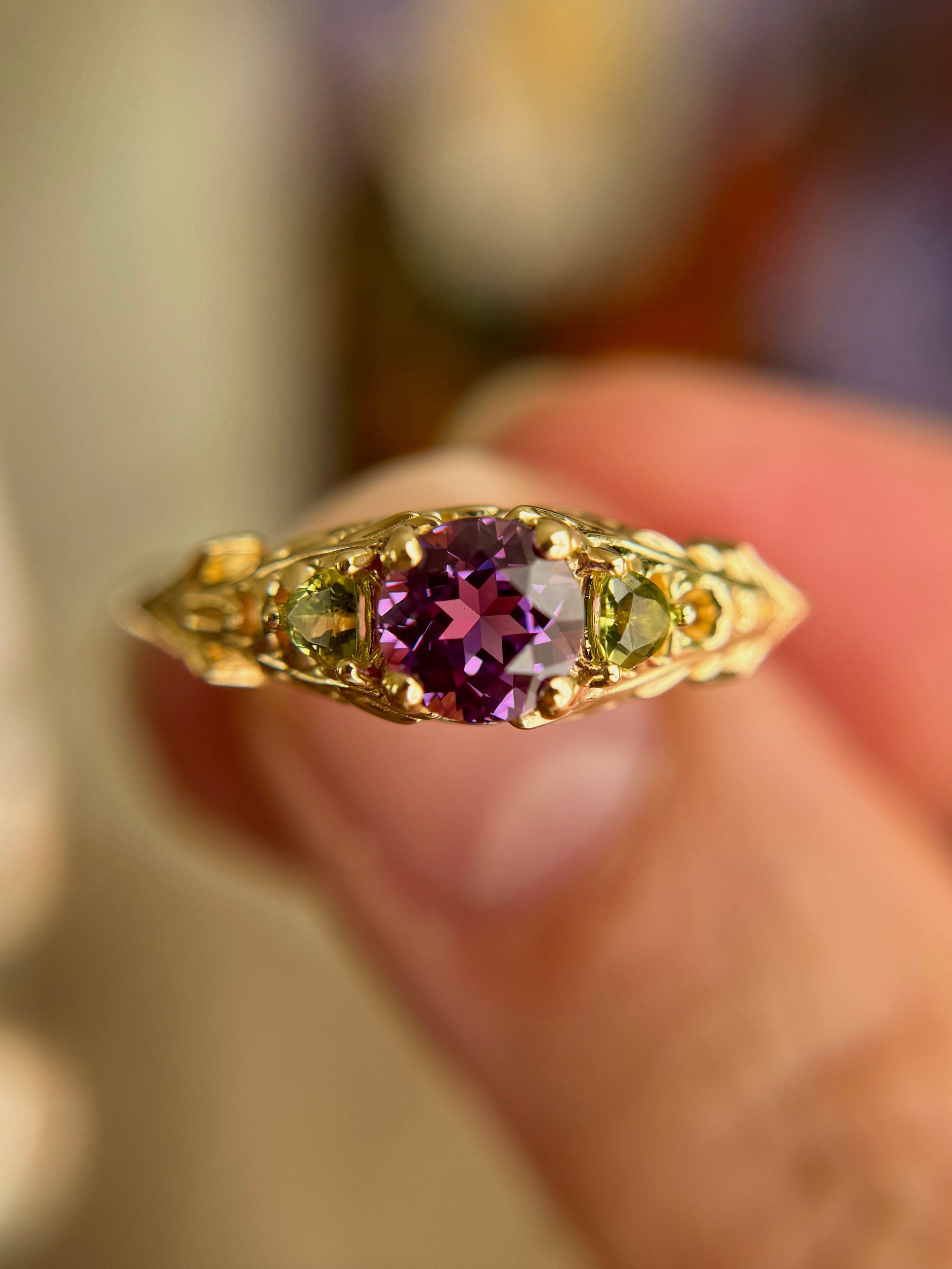 14K Yellow Gold, Amethyst, Peridot.